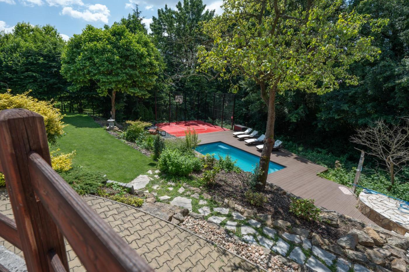 Featuring a sauna, Pod Buchlovem - wellness & sport is located in Buchlovice. This property offers access to a balcony, a pool table, free private parking and free WiFi. The holiday home has an outdoor swimming pool, sauna and a shared kitchen.