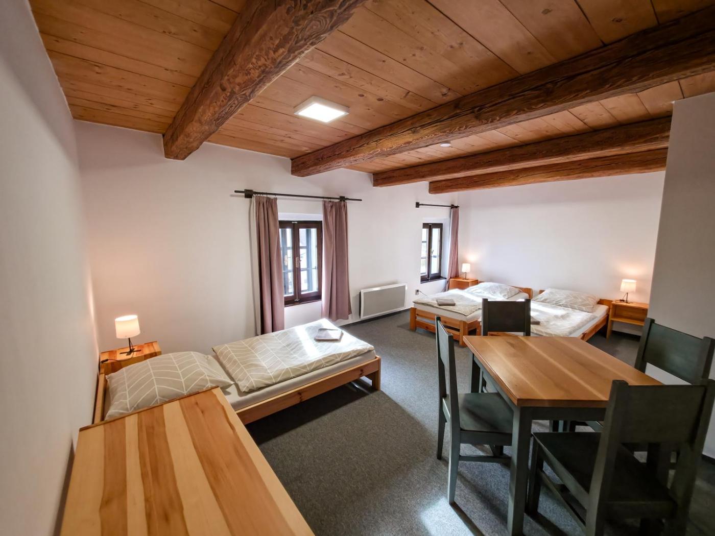 Pivovar Mlýn in Střížovice offers a unique stay within a historic building. Guests enjoy a garden, terrace, andcourtyard views.